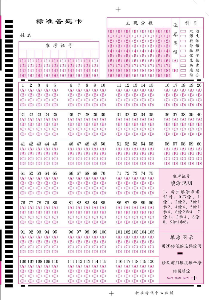 供應(yīng)標(biāo)準(zhǔn)答題卡,廠家直銷,送貨上門。105題,85題,100題,中考模擬答題卡等標(biāo)準(zhǔn)答題卡。量大優(yōu)惠