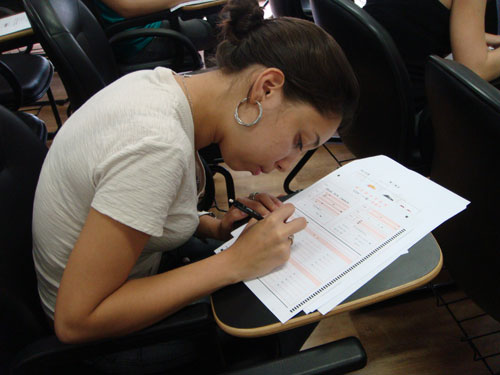 圣保羅州立大學孔子學院在該院的大禮堂成功地舉辦了新漢語水平一級考試(HSK)。